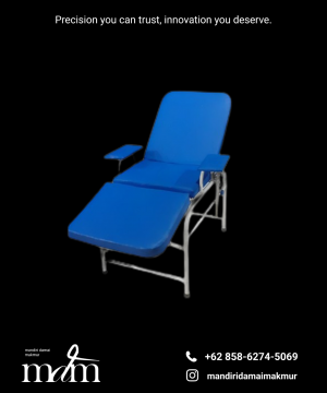 SPESIFIKASI : Kursi Donor Darah ( stainless steel ) UKURAN : 75x75x115 cm MATERIAL : Pipa Hollow stanliss steel 1mm MATRAS : Busa 7cm Lapis vynil WARNA MATRAS : bisa costom sesuai keinginan Bagian kepala dan kaki donatur bisa diatur kemiringannya hingga 45 derajat secara manual FINISHING : polishing kilat