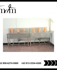 Sink Wastafel Industrial Foot Pedal SUS 304 3 Kran Spoel Hoek 3 Person